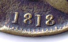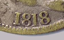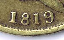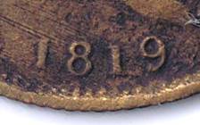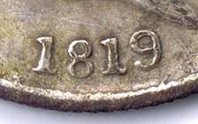 Mix of hand engraving and punches. Crude messy hair curls. 1818: C803o 1819: C901o, C902o |