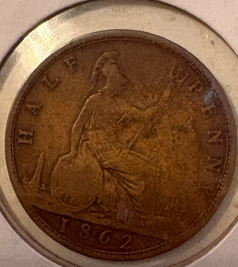 I noticed this 1862 Halfpenny with what appears like a possible trace of the letter A to the right of the lighthouse. What do you think? I have identified the coin in question as 7+G (I could be wrong) Im not sure what Im seeing is really the letter A, although the position and size is seamingly correct. Many thanks,