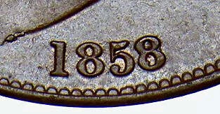 Another raw claimining 1858/3 Looks similar overdate to one in PCGS, at quick glance. Die crack that PCGS one does not have. https://ebay.us/m/59lIoN (Both this and the one in PCGS have hair ribbon-like things, which I recall theories being die clashes. PCGS one even has extension to hair curl's end).