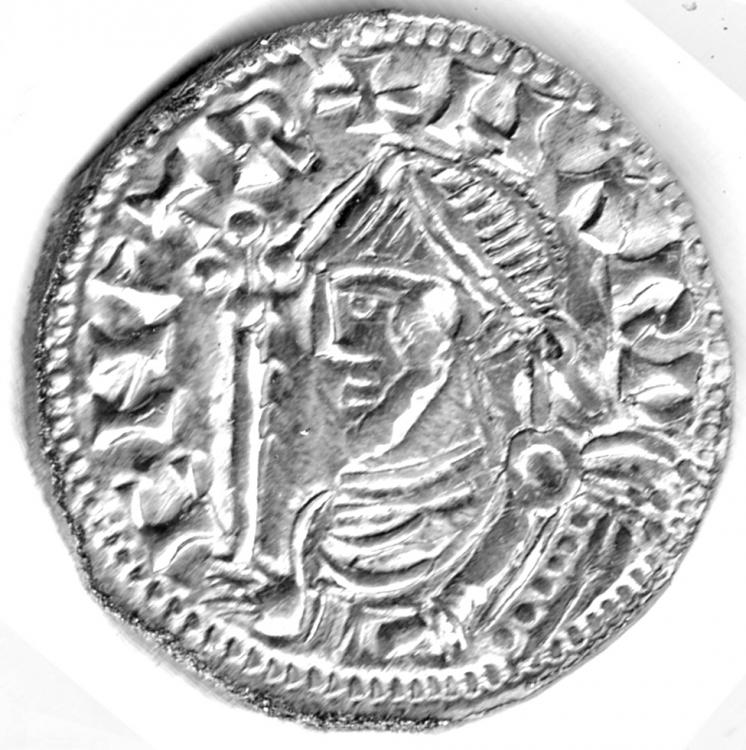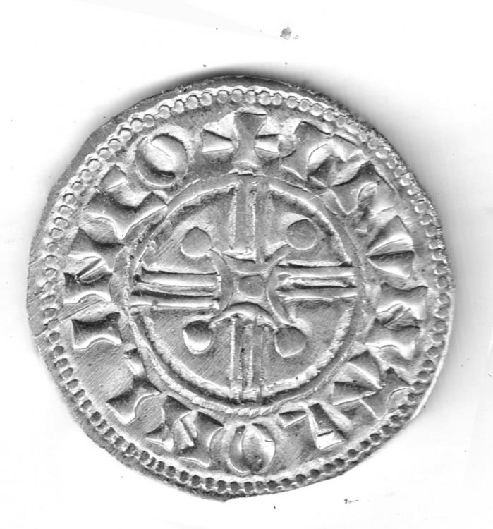 Hi Yes a proposed coin for the Wirral mint copied from an ilse of man penny, copied from an Irish copy which was copied from an English Longcross penny of Aethelread II. Made to look barbourous deliberately. Die set made for a Re-enactment group situated around the Wirral area