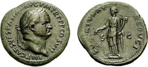 Yeah, that works. I think I can make out a figure holding a cornucopia (horn of plenty) Bit like this: Trouble is it could be a number of different Goddesses from Felicitas (I also think I can make out AVG to the right as perhaps in FELICITAS AVG) to Pax or whatever .. but it's a start I hope. Maybe look here: http://www.wildwinds.com/coins/ric/vespasian/t.html Though as I say, it might still be a copy .. .