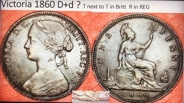 1860 Penny D + d Hi, I bought this 1860 Penny recently, think its a D + d, with die clashes I assume, but wondered if it was one of the micro varieties of + d's that Paul Holland found Great to get your expert thoughts Best Regards P.S. there is an extra couple of lines on the shield , well out of alignment, which I originally took to be a scratch in the auction photo, which I assume is related to die clashing