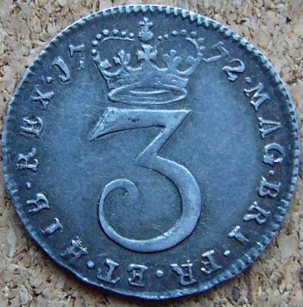 1772 George III 3 pence, this one troubles me as its in quite a good condition and as most of mine are circulated .... it has me wondering if this one is correct? Any thought or input greatly welcome..... Cheers "H" π