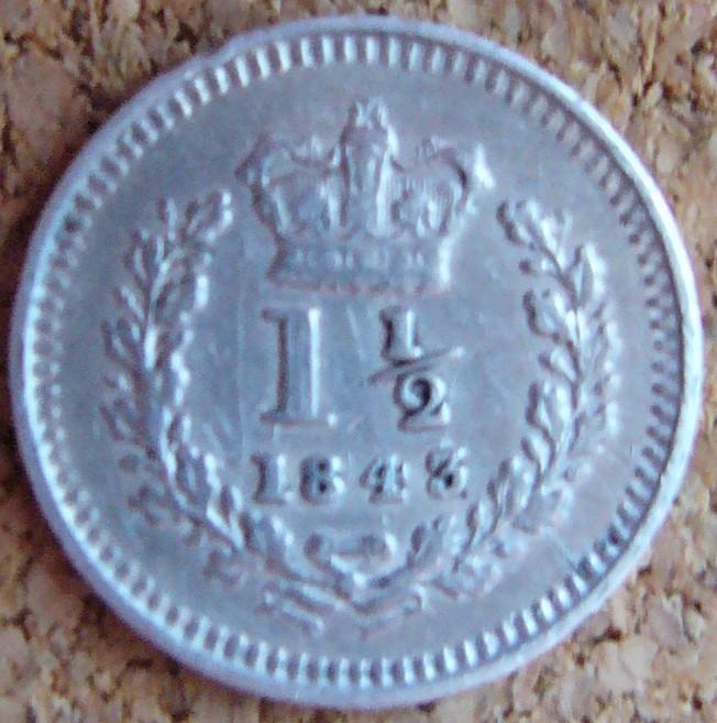 1Β½ Pence - Victoria 1st portrait; Colonial issue 1843 ....errmmm Lamination errors ? caught it by looking at different angles... the reverse side seems fine other than the out of line date numbers ...I believe that some over dates are common with some of the Colonial dates....π
