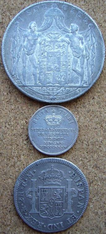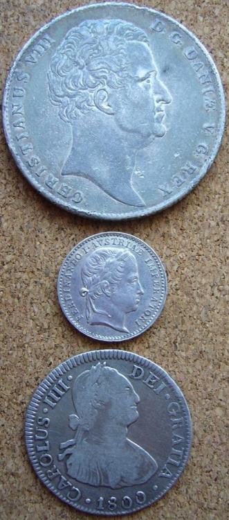 found today.... worth a show... 1840, Christian VIII, 1 Species Daler, Denmark 1835, Ferdinand 1st, Austria (Rarity) Homage in Vienna 1800, Charles IV, 2 Reales Mexico