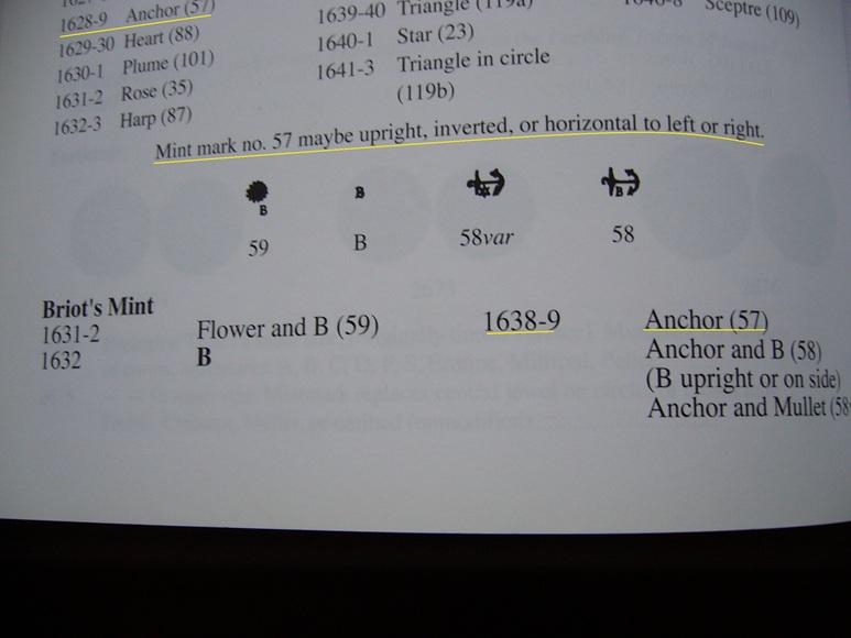 Ahhhh, now that's interesting, to be honest I Identified the coin to be a Charles I, Half Groat, 1638-39........the Briot's Mint came about as it doesn't mention the Tower mint and I took the Anchor to be Briot's..... just adding to the novice confusion the Anchor maybe Upright, Inverted, Horizontal to left or right.....it does however (and quite correctly) it mentions that S2856A as a milled coin by Briot's Mint 2 pages further on.....which i didn't see as I was looking at Hammered only coins. many thanks Rob for the correction π«‘πCheers "H"