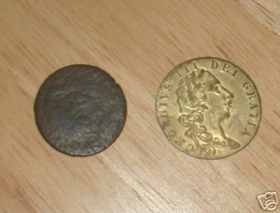 7. does anyone know what they might be. the seller has put this description and no picture of the fron of them the bidding is only at £3. are they worth bidding on? Two coins offered - unknown vintage or history. 'gold' coloured coin (may be a copy who knows!) says GEORGIVS III DEI GRATIA on head side and on reverse says 'In memory of the good old days 1797' with shield (coat of arms?) and crown. Other coin, believe to be genuine, is so worn that nothing can be made out on it. 'Gold' coloured measures approx. 1" diameter and other worn example measures about 7/8". Please feel free to email me with any questions, though I really don't know any more about these examples. back of coins