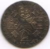 The reverse shows up a recurring feature of Taylor's restrikes. Frequently you will see the design ghosted, but rotated by a few degrees. This appears to be due to the state of the collars as purchased by Taylor at the Soho Mint sale, or of others that were used. It is known that the RENDER edge was seriously delapidated as an early restrike has metal protruding from the gaps in the joints to produce a quite spectacular piece. You also find that his plain collar was liable to open up, resulting in a series of vertical lines across the edge and multiply struck designs which are rotated by varying amounts. The reverse here shows two tridents and a selection of letters are also seen in duplicate.
