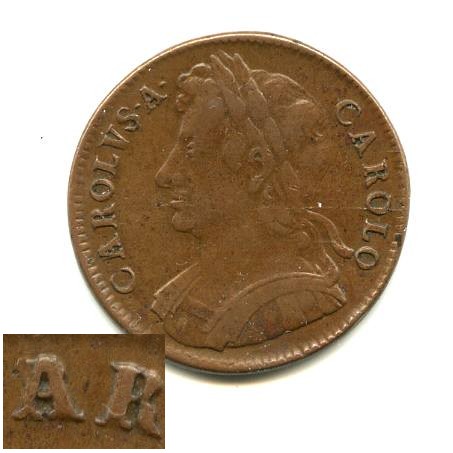 A 1673 1/2d with A/R in CAROLVS, this is not a modified CRAOLVS die. Thanks to Teg for the heads up.