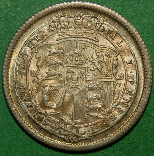 9. No it isn't. The I has lost its serifs. I don't have a sixpence, but the shilling is similar and looks as below.