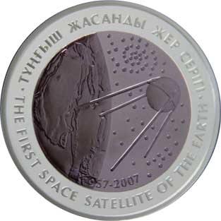 For sale rare bimetallic silver / tantalum coin from Kazakhstan: Kazakhstan 500 Tenge "1st space setallite of Earth" 2007 proof BIMETALLIC: inner disk is made of Tantalum, external ring is made of Silver. Total weight 41,4 gr. Fineness: 925 Silver, 14,6 gr. / Tantalum 38,61 gr. Mintage 4000 pcs only !!!!!!!!! PRICE ............ 140.00 USD Other dealers and collectors sell this coin more expensiv. Please compare: http://global.ebay.com/gbh/viItem?ItemId=130212103277 Tantalum is a chemical element with the symbol Ta and atomic number 73. A rare, hard, blue-grey, lustrous, transition metal, tantalum is highly corrosion-resistant and occurs naturally in the mineral tantalite, always together with the chemical similar niobium. The chemical inertnes of tantalum made it a valuble substance for laboratory equipment and substitute for platinum, but its main use today is in tantalum capacitors. If you interested in this coin please let me know.