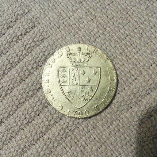 We've probably all experienced this scenario. Colleagues know you're a coin collector, so every now and then one will bring you some in to ID and value. In this case someone brought me an entire tin of coins, all of which were worthless, with the possible exception of this one. I had no idea what it was, as it's outside my speciality, but it looked as though it had potential and I told her so. She asked me to take it away and see if I could positively ID what it was. From brief research at home, it looks like it might be a spade half guinea from 1790, but the obverse just doesn't match pictured specimens at all. So I'm wondering if it's a fake. The reverse looks a lot better than the obverse. Any thoughts? Thanks in advance.
