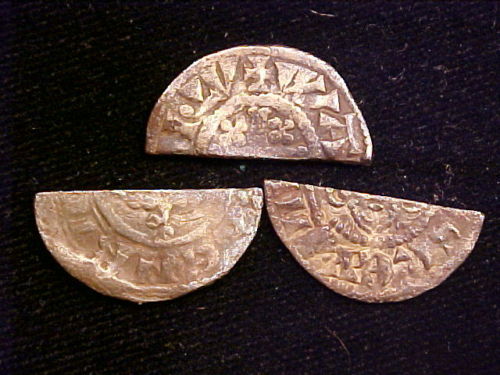 7. I just bought a lot of unattributed cut hammered coins online from a dealer that I use fairly frequently for US and some world coins and was wondering if anyone could help me attribute them. 2 I believe are Henry II because from what I can tell from my trusty Spink/Seaby book his reign seems to be the only one that uses 4 of the orbs in each quarter of the cross and would have the cross on the top. Can't seem to make out any letters from the other coin so I have no clue about that. The dealer's pics aren't the greatest pictures, but I was wondering if any of the hammered experts here can help figure out what these are.