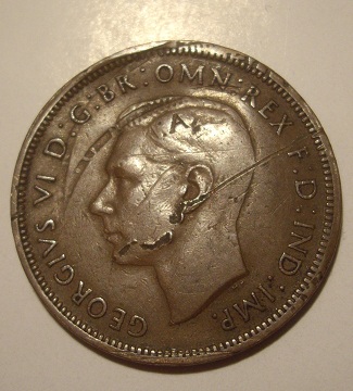 I suggest that someone has put the above coin and a George V coin in a vice and squeezed them together because the GRA is reversed incuse and so was done by something in the same vein as a regular coin. It would not have been done by the mint. Hi I thought of somethings like this, but some letters in indented ie below the surface ( explained by the vice idea) and some is raised up above the surface like a normal coin would look with the letters the right way round, just in the wrong place. And this would only happen if the thing that pressed into the coin was the reverse image, such as a dye. I mean the coins bashed to hell, It just puzzles me as to how this came about.