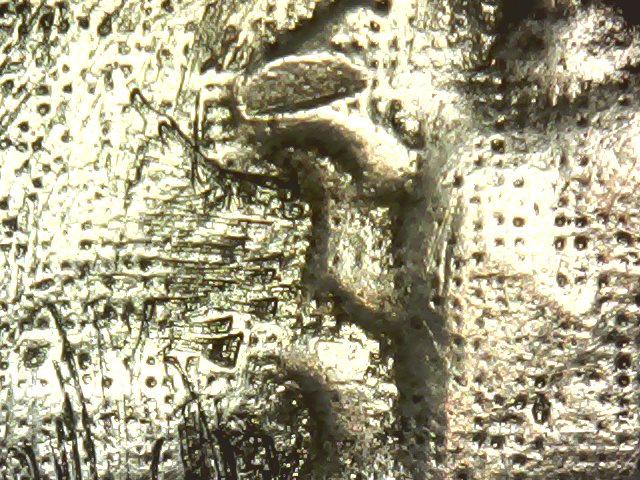 hi guys it here it is pewter and not lead and it has a strainge pattern in the fields any thoughts this is a closup of here eye and mouth -