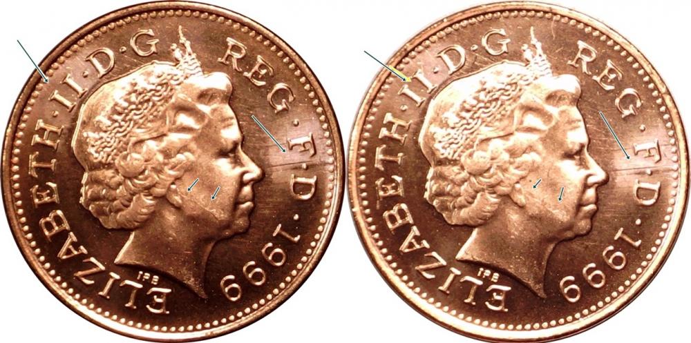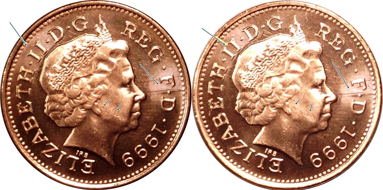 Did you find many 1999 with a inherent strike flaw in front of Elizabeth's Nose spreading across to the rim? the flaws are on the cheek ,behind the head and the truncation. Identical in every way.