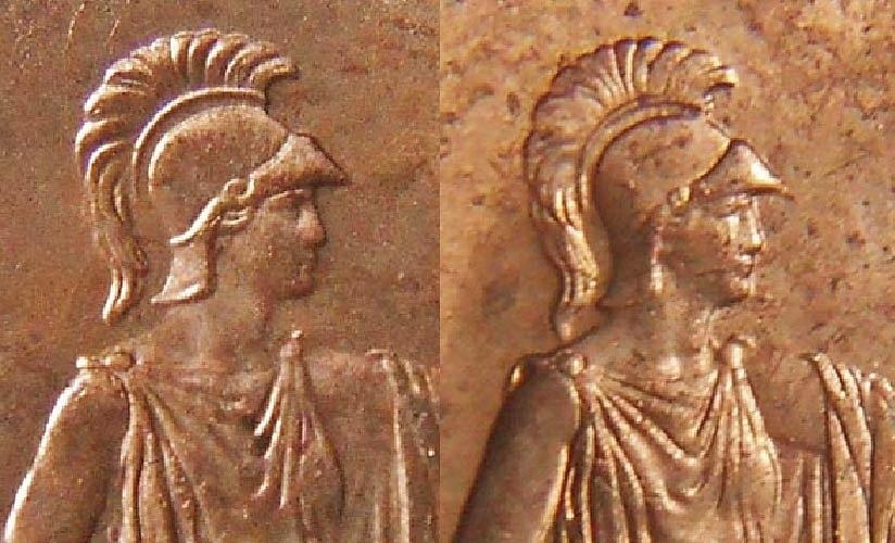 Four of a kindterrysoldpennies replied to terrysoldpennies's topic in British Coin Related Discussions & Enquiries I did know that Pete I posted that on here in Feb 2016 but its that the two missing sea dates are both different one with the long plume the other with the short