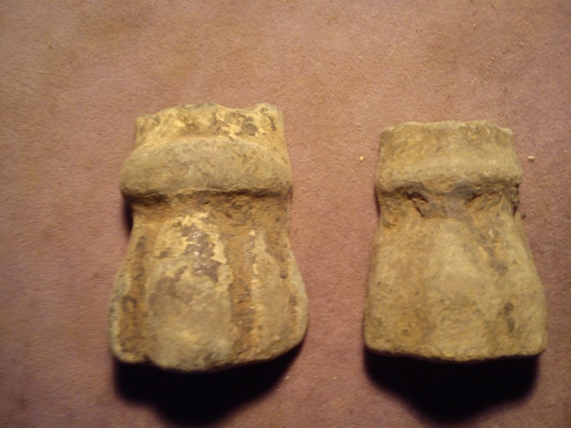 Maybe off a pony small horse harness deffo looks a functional object rather than decorative but cant find anything like it on the www to know for sure what it is Copper alloy (brass) hoofed feet off a cooking pot I doubt they are from the same pot as one is larger than the other, could be anywhere between 1200-1800 in date -