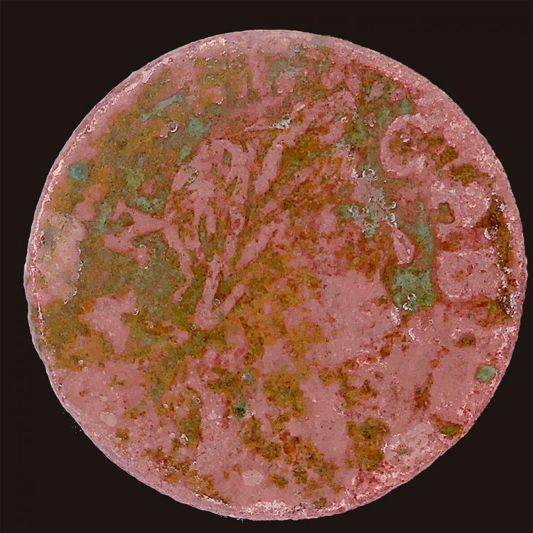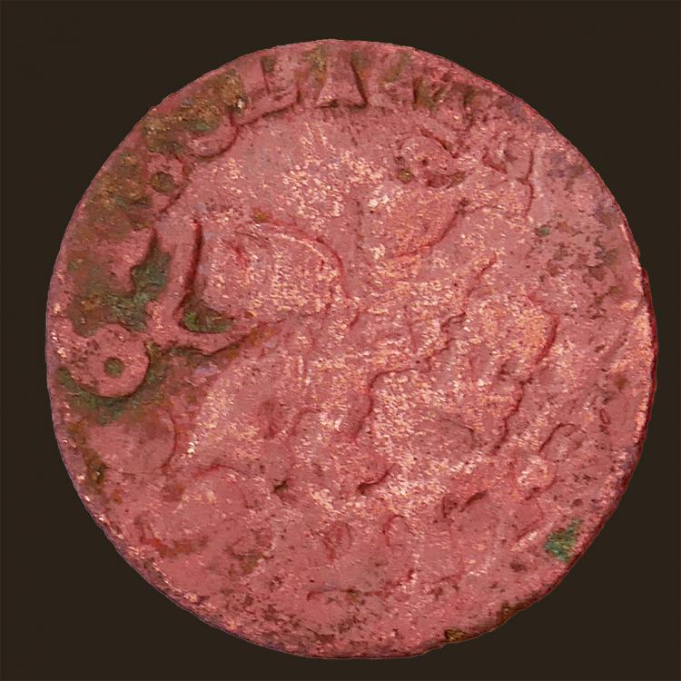 I'm thinking this is also a copper-alloy coin, and I should note it's surprisingly thin. I believe it is a "semi" in size.