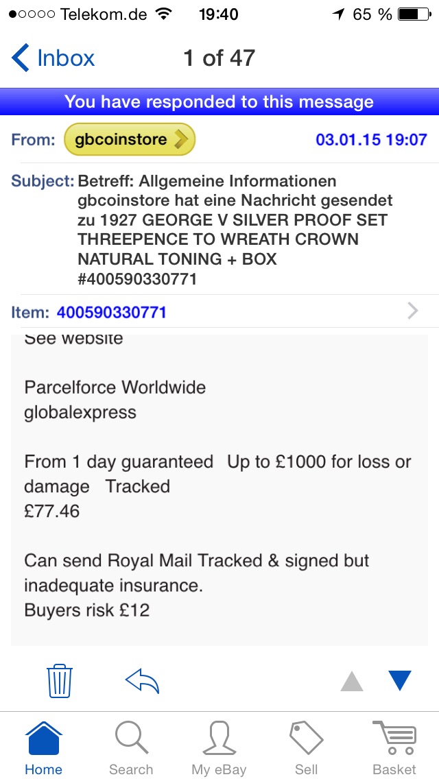 Also, maybe there's been a change since I sold that batch of coins before Christmas, because the royal Mail postage calculator won't give me an insured signed-for option to Germany? Not even for £500???