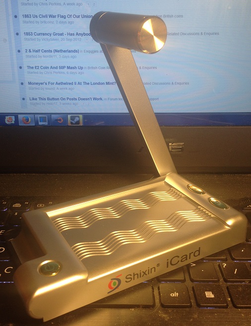 Peckris Posted November 18, 2013 Posted November 18, 2013 This one looks interesting & more infoThis one's 5MP, and looks sturdier than the one we've been discussing aboveThat does look interesting, and there's a Mac version too. It says it's a document camera - I would hope it has enough depth of field for even the most raised or deep engraved coin design? (I'm especially thinking 1797 twopence here). One problem is that unlike one rival, it doesn't come with a built-in LED light. Quote